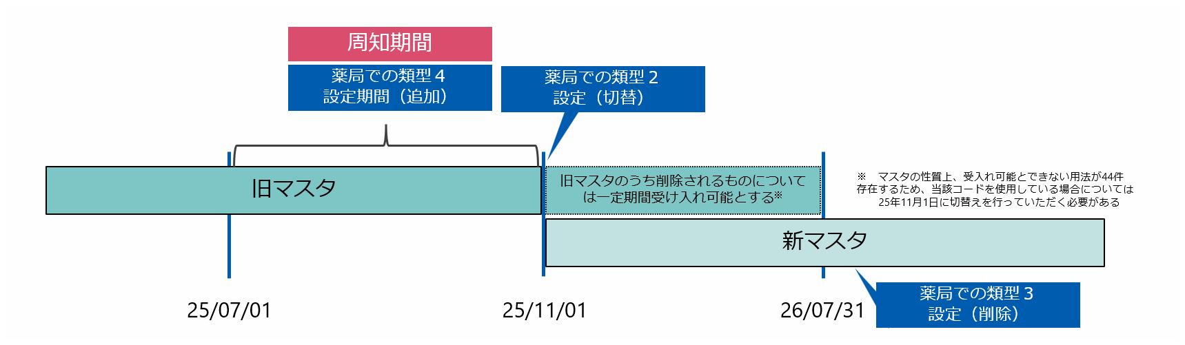 2025/11/1に新マスタが適用されます。また、2026/7/31に旧マスタが廃止されます。