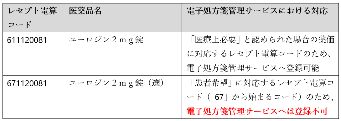 <電子処方箋管理サービスで使用可能なレセプト電算コードについて>