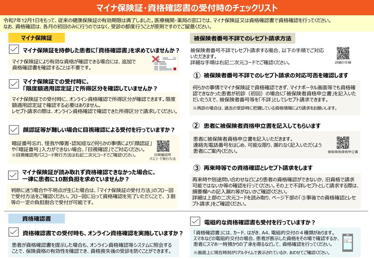 ※受付時の確認事項を整理した「マイナ保険証・資格確認書の受付時のチェックリスト・受付方法」はこちらからダウンロードしてください。