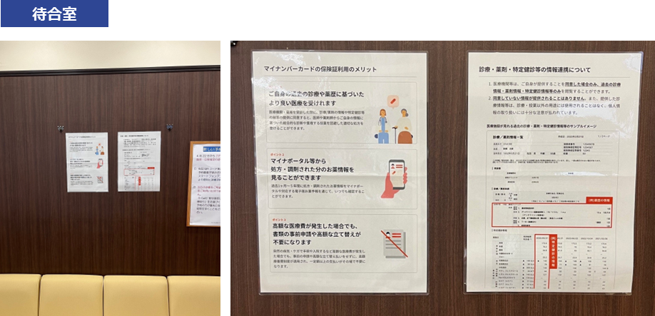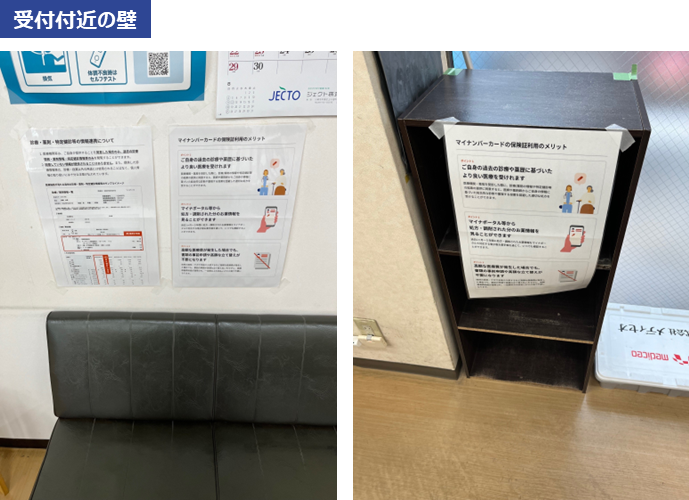 院内デザインの工夫とは、医療機関・薬局内のポスター・カードリーダー・チラシ等の内容・配置を工夫することで、従来の健康保険証利用からマイナ保険証利用への行動変容を促す取組みになります。