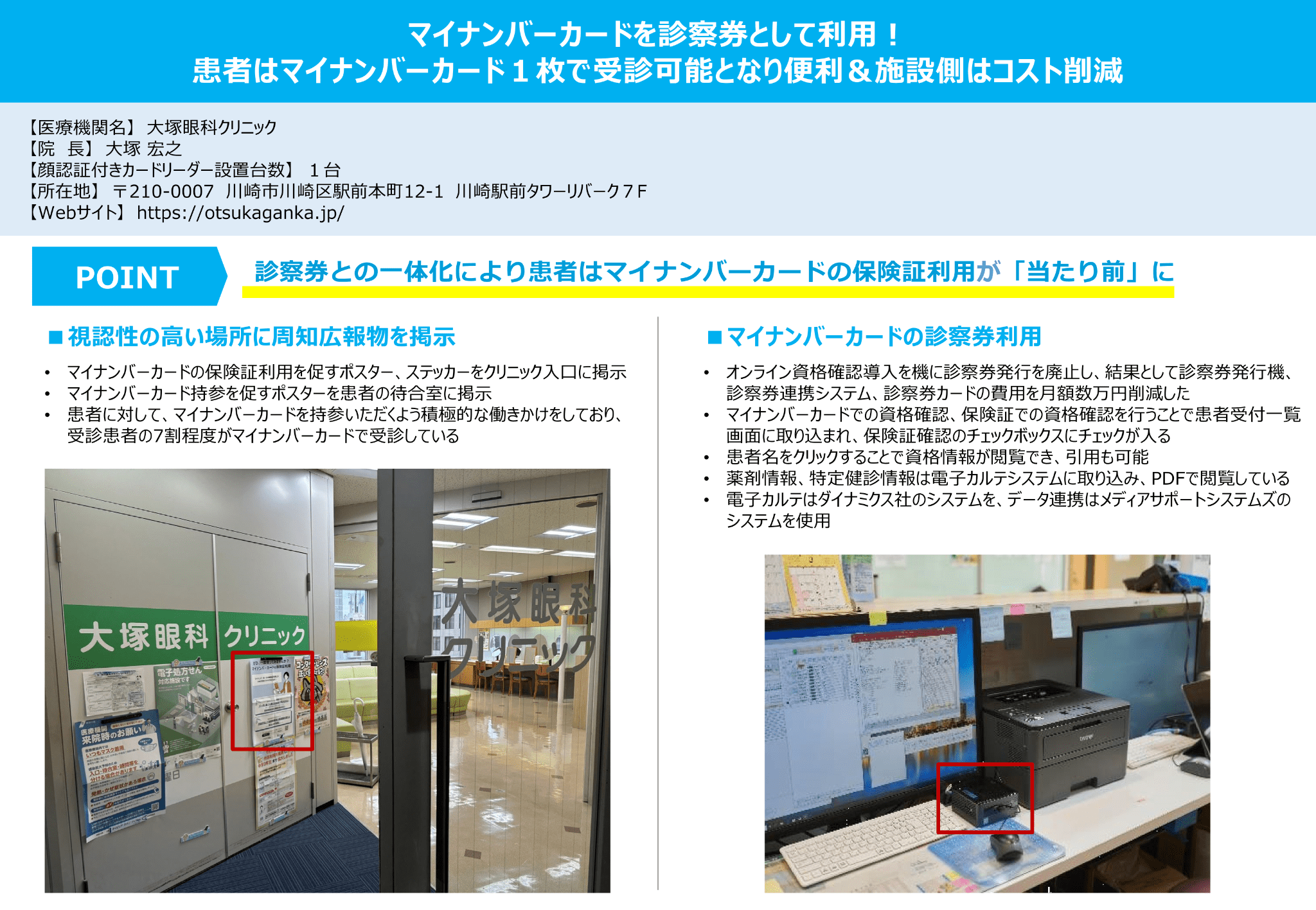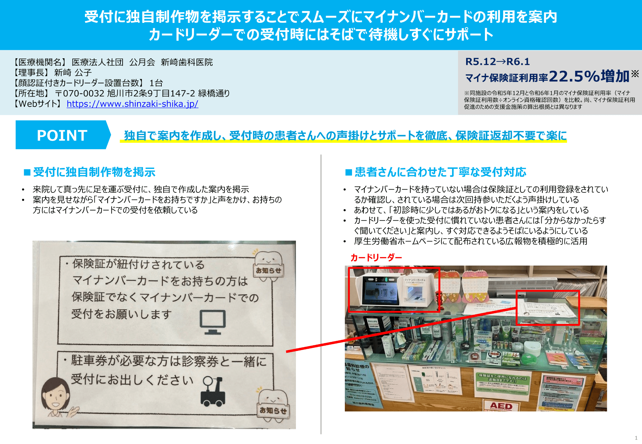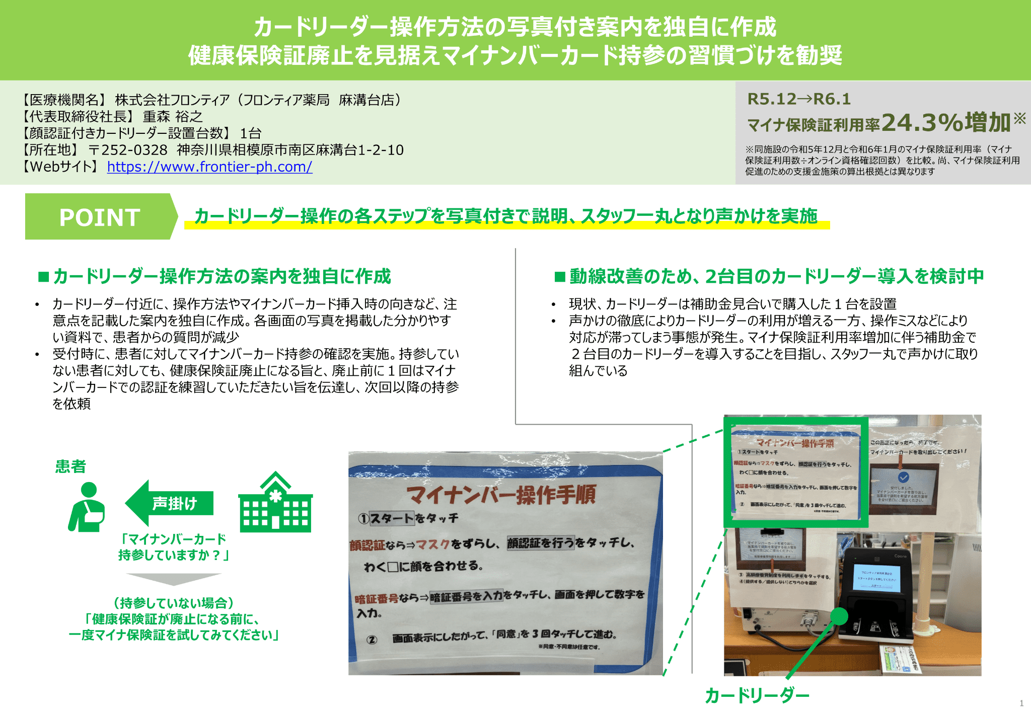 ②より効果的なお声かけや院内デザインの工夫によりマイナ保険証利用率が大きく向上した事例