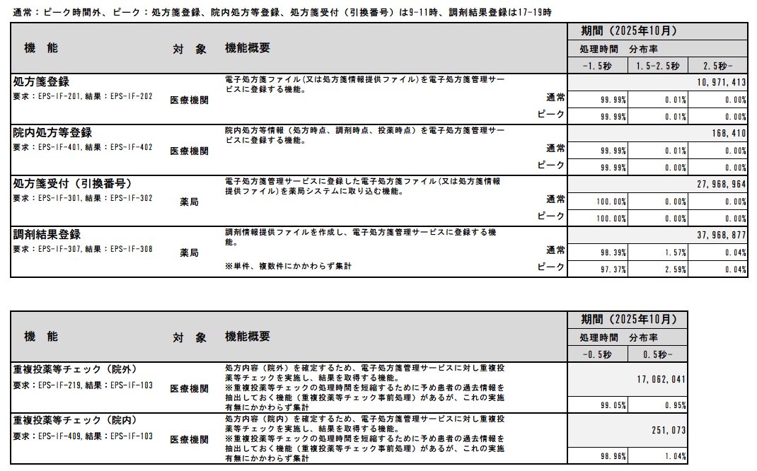 電子処方箋管理サービス各機能のレスポンス実績値の公開について