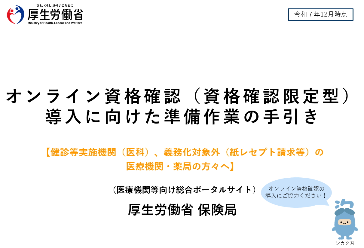 オンライン資格確認(資格確認限定型)導入に向けた全体の流れについては、以下の資料をご確認ください