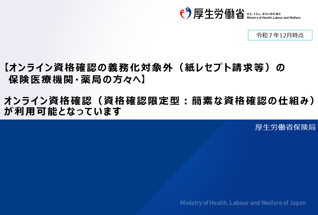 義務化対象外(紙レセプト請求等)の保険医療機関・薬局におけるオンライン資格確認