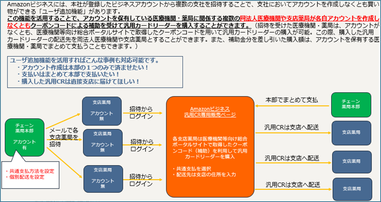 本店のAmazonビジネスアカウントからメールで支店を招待する機能