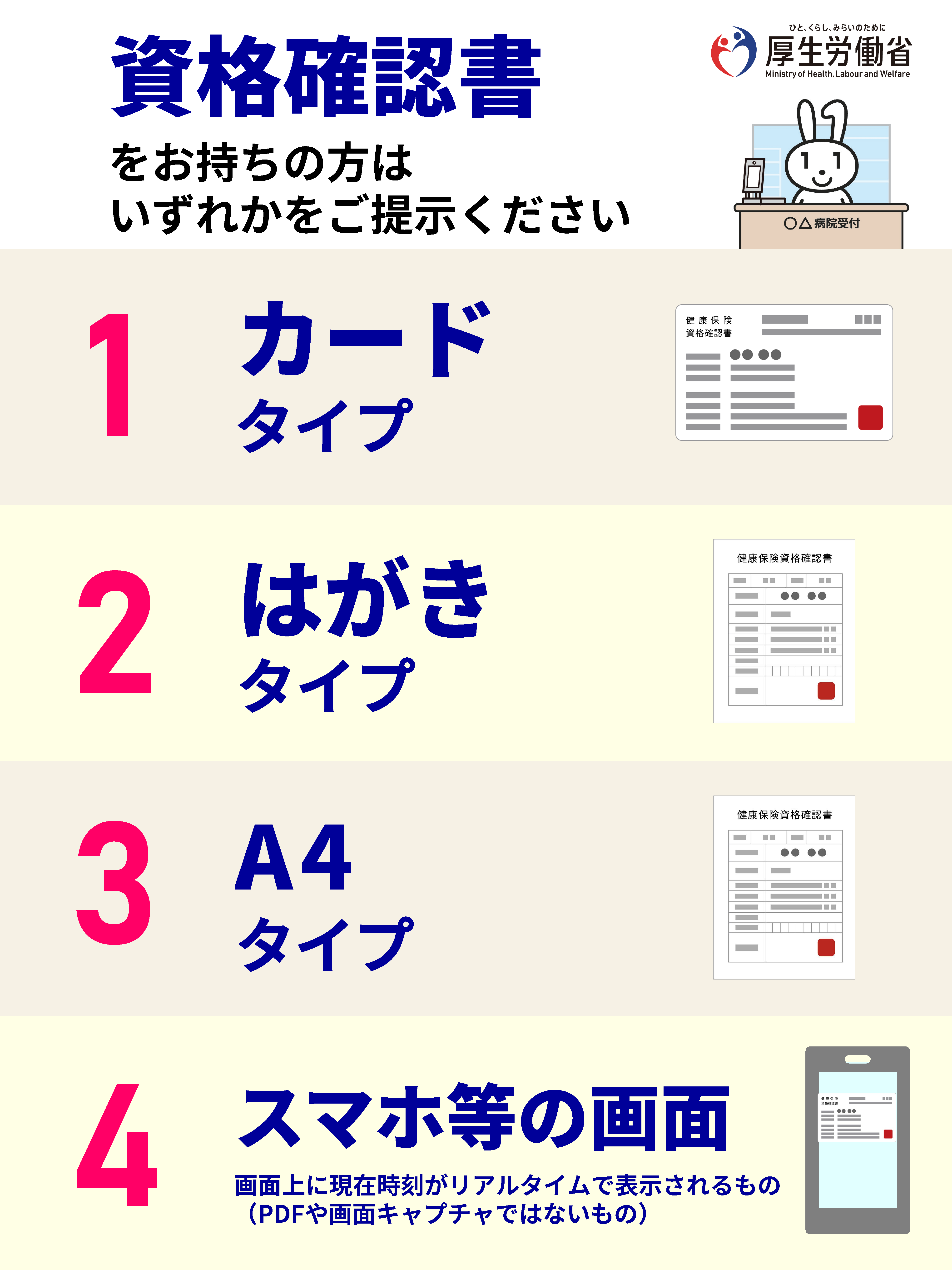 「マイナ保険証」か「資格確認書」で資格確認を行ってください。