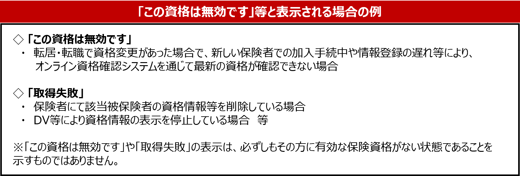 〇「この資格は無効です 」や「取得失敗 」と表示された場合の資格確認方法〇