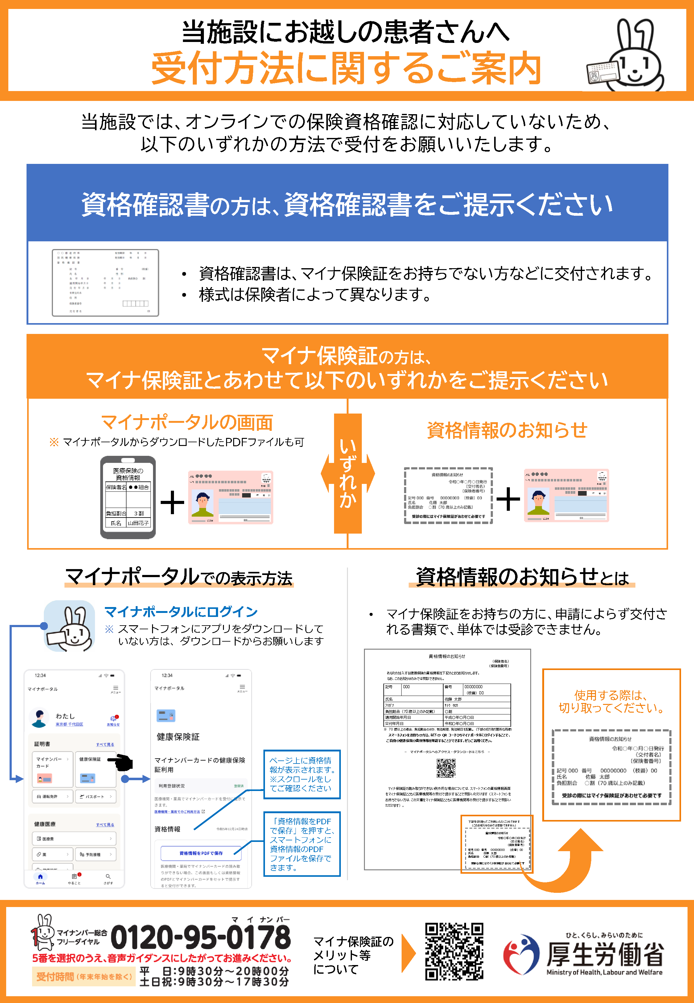 患者向けの施設内掲示用資料もございます。資格確認書について患者に説明する際など、以下の画像をクリックしてダウンロードのうえ、印刷してご活用ください。